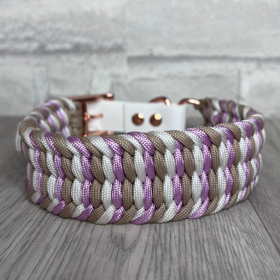 Paracord Halsband in Beige,Weiss und Rosa