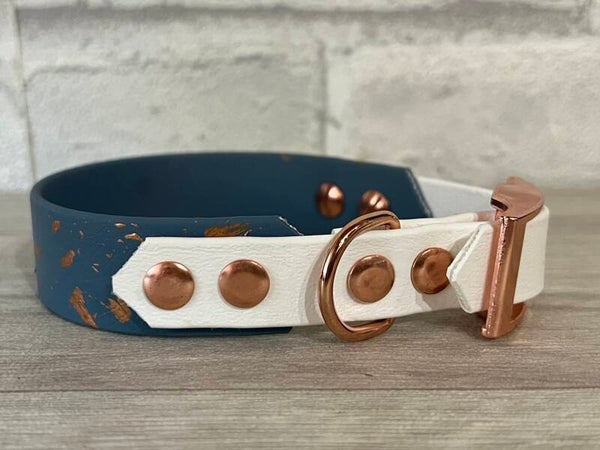 2 Farbiges Biothane HalsbandPetrol Weiss