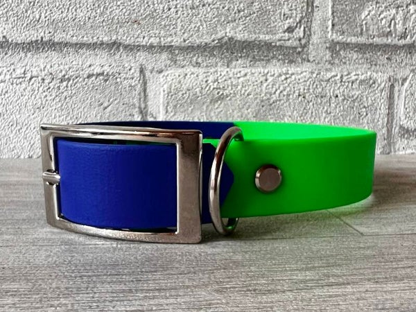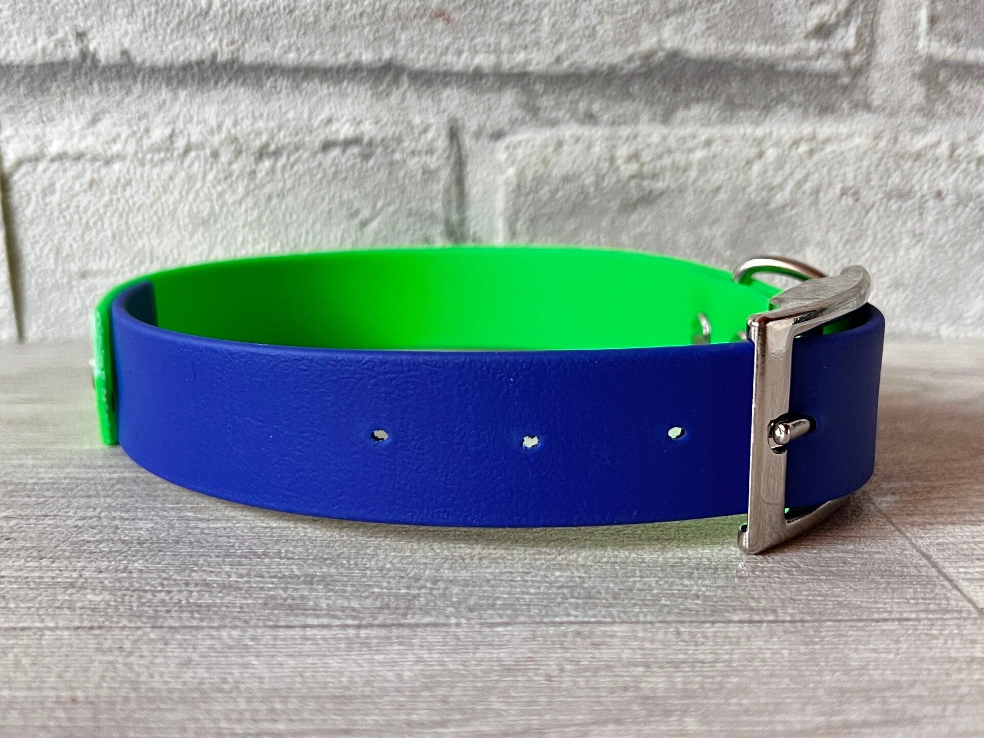 2 Farbiges Biothane Halsband in Elektrik Blau -Neon Grün